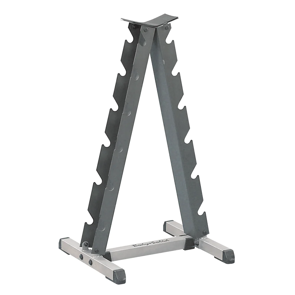 The uniquely designed Two-Tier Vertical Dumbbell Rack holds 6 pairs of hex dumbbells. Each level is off-set, allowing unrestricted access to dumbbells. Place it against a wall or center it in a room. Heavy-gauge steel construction offers maximum durability and better performance in less space.