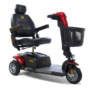 The Golden Buzzaround LX 3-Wheel Scooter provides a fantastic combination of comfort, performance, and portability. It supports weight capacities up to 375 lb. on suspension springs and has a turning radius of 40.5”. The Buzzaround LX 3-Wheel also gets up to 18 miles on a single charge and provides plenty of foot room.