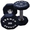 Perhaps one of the most ergonomically correct dumbbells on the market, York’s Pro Style Dumbbells feature a shortened fully knurled 30mm solid steel handle. The shorter handle results in less hand travel and optimum control of the dumbbells during exercise. The Pro Style Dumbbell heads are comprised of solid steel inserts fully encased in virgin rubber. The solid steel handle passes through the steel insert and is welded, permanently joining the head to the handle. The virgin rubber coating increases durability, protects flooring and equipment, enhances appearance, diminishes noise, and is easy to clean. Pro Style Dumbbell Sets are available in 5-50 lb., 55-100 lb., 105-125 lb., 130-150 lb.